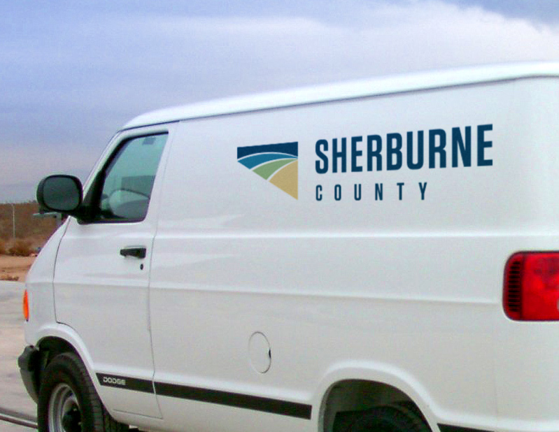 Default to the white Sherburne logo for all vehicles, except for light gray or white vehicles where the logo wouldn't be legible. In these cases use the full-color or single-color logo.