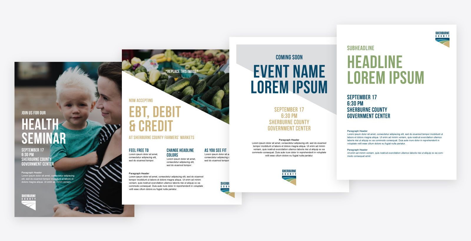 The Sherburne County brand utilizes two typefaces, Bebas Neue and Helvetica Neue.