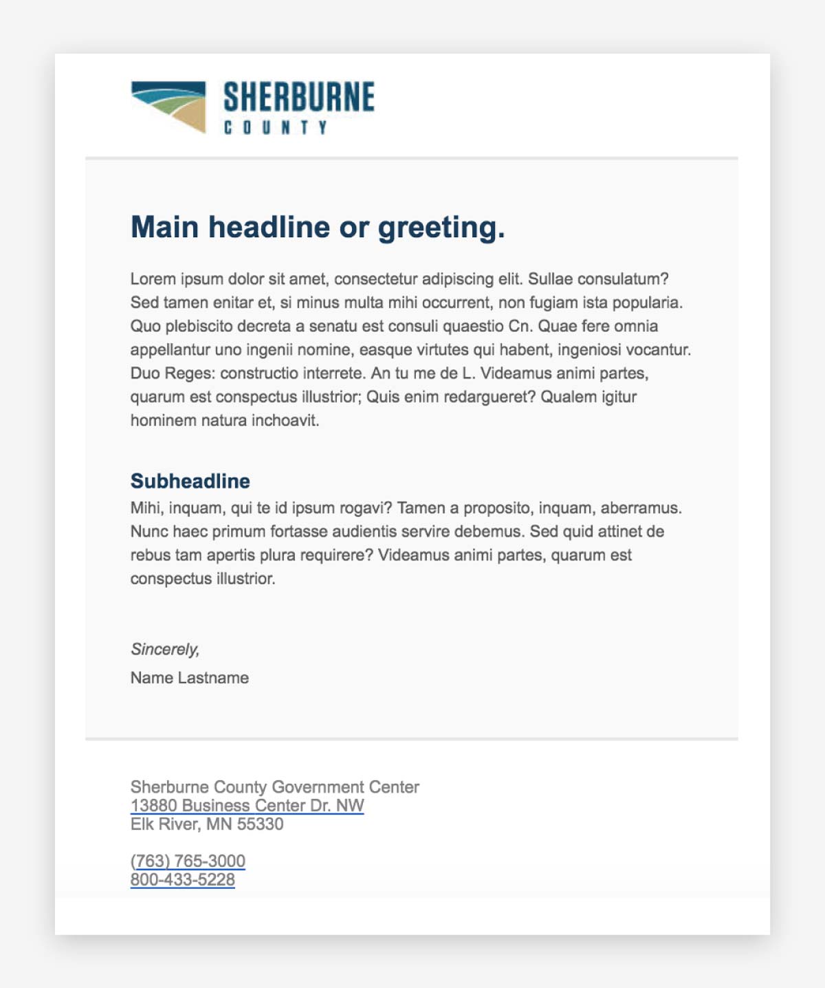 The copy and voice is warm and straightforward. There's a friendly brevity to it. It is conversational, though not too informal as Sherburne County is an institute of authority.